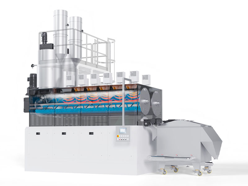 Geri dönüştürülmüş materyallerdeki uçucu organik bileşenleri (VOC) ve istenmeyen kokuları ortadan kaldıran ileri teknoloji. Son ürün kalitesini artırarak granülleri gıda ve kozmetik ambalajı standartlarına yaklaştırır.